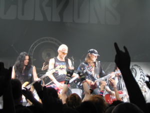 ![]() Hannover, Heimat der EXPO 2000, letzte Station eines Ex-Kanzlerkandidaten und Hauptstadt des Bundeslandes Niedersachsen. 1965 gründet sich ausgerechnet dort die wohl erfolgreichste deutsche Heavy-Combo der 80er. Initiator Rudolf Schenker und sein Bruder Michael beginnen zusammen mit Wolfgang Dziony am Schlagzeug als die Scorpions zu musizieren und stoßen im Proberaum nebenan auf Sänger Klaus Meine, der zu der Zeit mit den Jungs von Corpenicus das Haus rockt. Auch Michael Schenker wirkt zu diesem Zeitpunkt noch bei diesen Corpenicus mit, die sich 1969 jedoch auflösen. Dass es die richtige Entscheidung für Michael und Klaus ist, sich auf die eine Band zu konzentrieren, kristallisiert sich schon ein Jahr später heraus. ![]() Das Debütalbum "Lonesome Crow" und kommt 1972 in die Läden. Nach der Promotion-Tour steigt Michael ein Jahr später aus der Gruppe aus. Er überzeugt die Kollegen der britischen Rock-Formation UFO mit seinen erstaunlichen Fertigkeiten an der Gitarre und schließt sich kurzerhand dieser englischen Rockkombo an. Ulrich Jon Roth ersetzt den Lead-Gitarristen vorrübergehend. In diesem Jahr nehmen die Scorpions mit The Sweet ihre erste Europa-Tournee in Angriff. Ihr Heavy-Rock kommt bei den Konzerten gut an. Dabei versuchen die Hannoveraner immer, eingängige Songs zu schreiben und melodische Parts einzufügen. Ein große Chance bietet sich 1975. Die Combo tourt als Co-Headliner mit KISS durch Europa, was sie schnell populär werden lässt. Nach etlichen Auszeichnungen in Deutschland bringen es die Jungs auch auf anderen Kontinenten zu Ruhm. In Japan erreichen sie 1976 Goldstatus. Daraufhin spielt die Gruppe etliche Gigs in diesem Land, in dem sie zum ersten Mal gefeiert werden wie Rockstars. Trotz diesem Erfolg verlässt Uli Jon Roth nach der Tournee die Band. Klaus Meine, Rudolf Schenker und Matthias Jabs bilden bis heute das musikalische Rückgrat der Scorpions. Zusammen mit Francis Buchholz am Bass und Herman Rarebell (eigentlich Hermann Erbel) am Schlagzeug findet sich 1979 die endgültige Formation. Bereits 1979 wird in den USA die erste Scorpions-Platte "Lovedrive" vergoldet. Das Live-Album "World Wide Live" stellt eine Dokumentation der ausgiebigen Tourneen der Hannoveraner dar. Dazu gibt's auch ein Video, das die Jungs in Aktion zeigt. Anfang der 80er Jahre verliert Klaus Meine seine Stimme, er muss eine langwierige Therapie und zwei Operationen an seinen Stimmbändern über sich ergehen lassen. Doch die Band hält zu ihm und sucht sich keinen neuen Sänger. Schon 1982 kehren sie gemeinsam mit neuer Power zurück. Die Zuversicht der restlichen Bandglieder festigt den Zusammenhalt innerhalb der Gruppe, und Meine überrascht die Kritiker nach seiner Genesung mit neuem Stimmvolumen. Nicht nur aufgrund dieser Tatsache hat sich das Warten und die Zwangspause gelohnt. Klaus komponiert 1989 den Hit "Wind Of Change", den die Scorpions 1990 auf dem Album "Crazy World" in die Läden bringen. Der zum Teil gepfiffene Hit mausert sich in Deutschland zur Mauerfallhymne und bleibt wochenlang die Nummer eins in den Charts. Dass die Scorpions schon immer für Balladen gut sind, beweisen sie schon vorher ("Still Lovin' You"), aber der Erfolg des Wechselwindes bricht alle Rekorde. Was wirklich Kohle bringt, merken die Buben recht schnell, und so verschwinden die wilden Sounds der Scorpions aus den frühen 80ern in den 90ern mehr und mehr, die Fans sind auch nicht mehr so zahlreich wie damals in den guten alten Zeiten. Trotzdem spielt die Rock-Formation als Headliner auf etlichen Festivals. Größen wie Bon Jovi, Metallica, Iron Maiden, Def Leppard und andere Bands treten im Vorprogramm der Hannover Rock-Opis auf. Welttourneen schließen sich diesen ausverkauften Konzerten in den größten Hallen Europas an. 1999 sind sie wieder mit neuer Single und auch neuem Album ("Eye To Eye") am Start. Auf der Expo 2000 in Hannover spielen sie mit Unterstützung der Berliner Philhamoniker "Moment Of Glory" ein und bringen das Event 2004 sogar nochmal auf DVD raus. Zuvor steht 2001 aber noch "Acoustica" an, auf dem die Scorps einige ihrer Hits im akustischen Gewand vor Livepublikum präsentieren. Ob das so zwinngend notwendig ist, bleibt Ermessenssache. 2004 steht ein Jubiläum bei den legendären Rockern an. Sie verwirklichen nach 35 Jahren Bandgeschichte ihr 20. Album "Unbreakable". Da ist es doch an der Zeit, mal wieder den Dampfhammer herauszuholen, statt mit Wattebäuschchen um sich zu werfen. Doch schon steht das nächste Jubiläum ins Haus, denn mit "The Platinum Collection" feiern die Herren ihr 40-jähriges (!) Bühnenjubiläum. Andere saugen da schon lange im Sauerstoffzelt, nicht so die Scorpions. Studioalben: 1972: Lonesome Crow 1974: Fly To The Rainbow 1975: In Trance 1976: Virgin Killer 1977: Taken By Force 1979: Lovedrive 1980: Animal Magnetism 1982: Blackout 1984: Love At First Sting 1988: Savage Amusement 1990: Crazy World 1993: Face The Heat 1996: Pure Instinct 1999: Eye II Eye 2004: Unbreakable 2007: Humanity - Hour I |